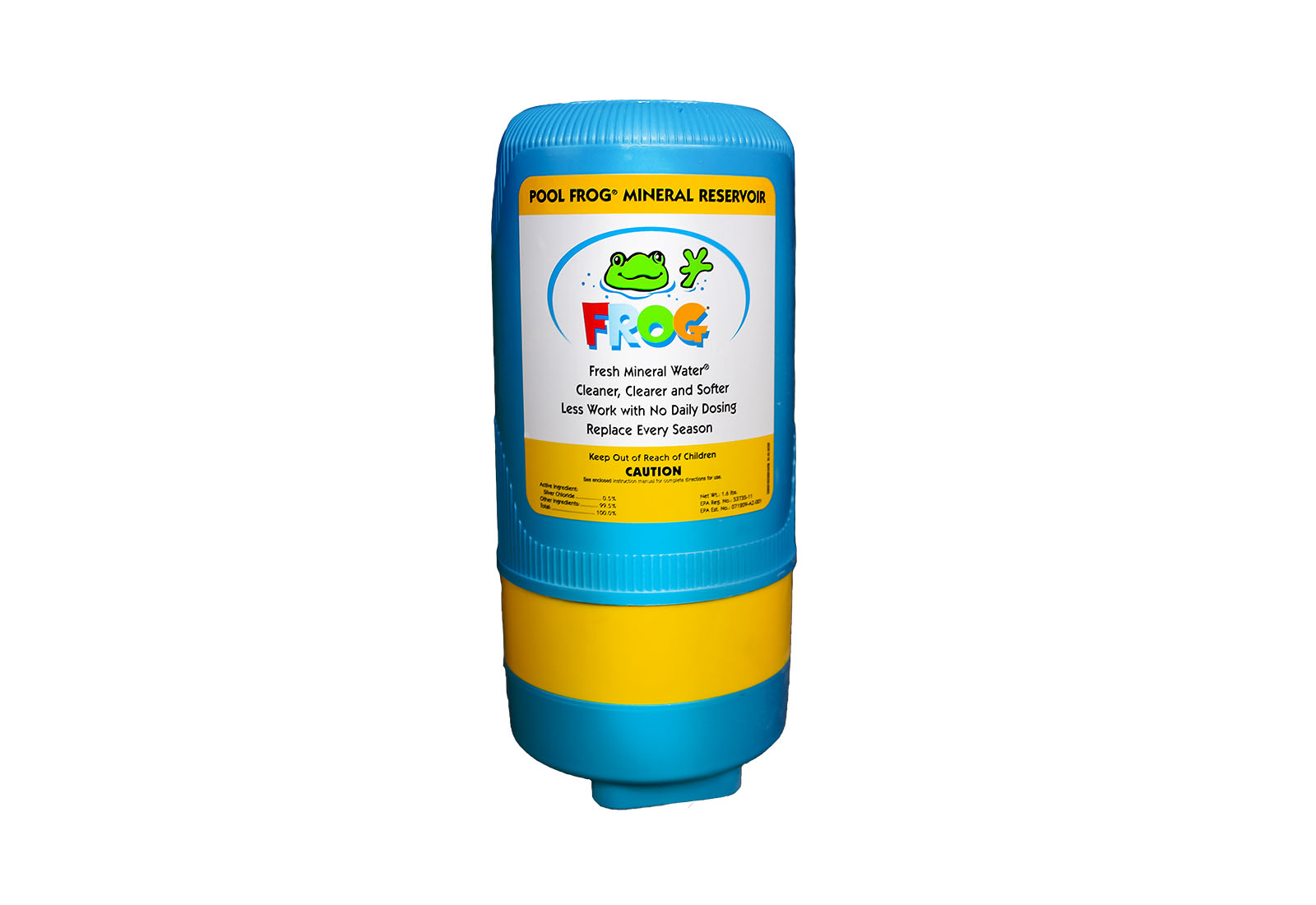 You are receiving one In-Ground Pool FROG Mineral Reservoir 5400 and 6 Pool FROG Bac Pac 2.2 LB each. Pool FROG is an all-in-one pool sanitizing system that creates Fresh Mineral Water in your swimming pool. The water is cleaner because FROG kills bacteria two ways with minerals and a low level of chlorine. With up to 50% less chlorine used, the pool will feel softer with no smelly odors or faded swimsuits. It’s precision performance means you set it and forget it and pre-filled pacs offer no mess, no guess and no stress pool care.