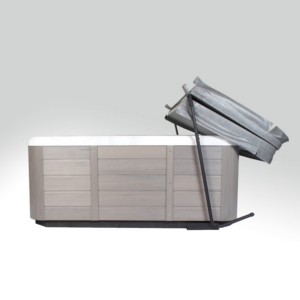 The Spa Ease SEL 150 is a superior cover lift that offers a simplistic design. It fits most of today’s spas up to 96″, including the Gander, all the while offering ease of use and affordability. The Spa Ease slides effortlessly behind the spa enabling a view from all sides. While the spa is in use, the Spa Ease reduces cover wear and tear by keeping the cover off of the ground. The powder coated finish in addition to the improved frame strength ensures years of effortless spa cover removal.